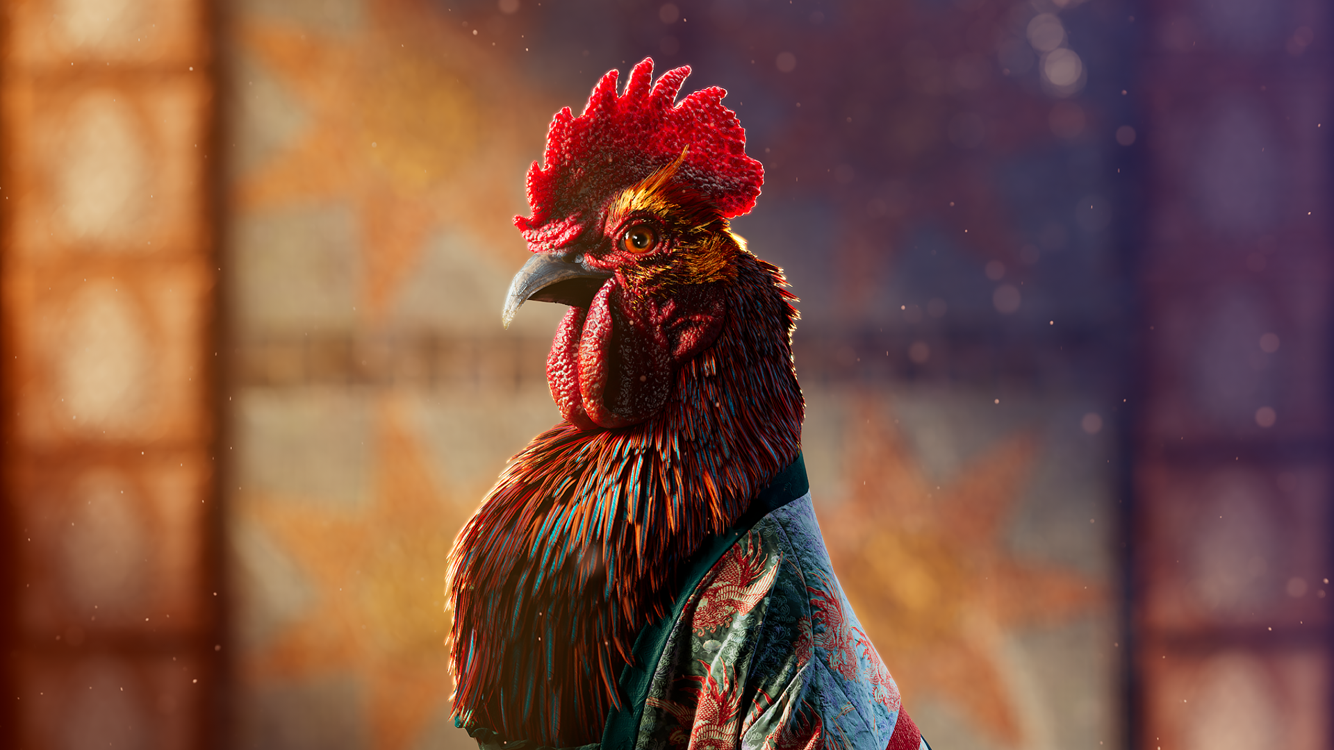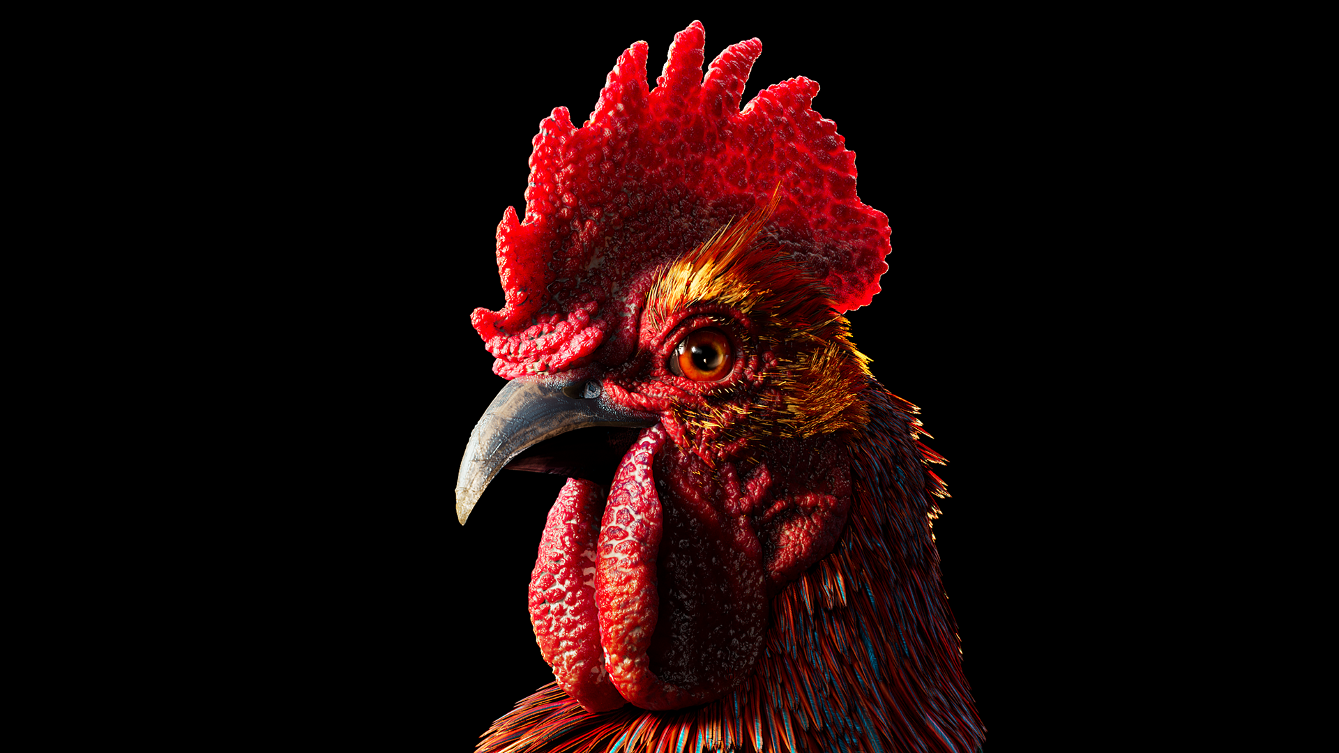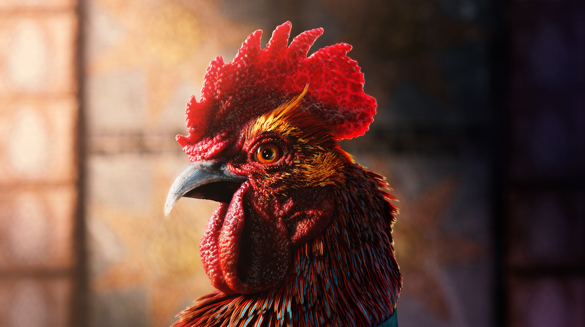 Based on an original concept by Junling Wang. I adapted and reimagined the design with more rooster-like anatomy and expressive personality. Responsible for all modeling, grooming, texturing, shading, look development, lighting, and rendering.